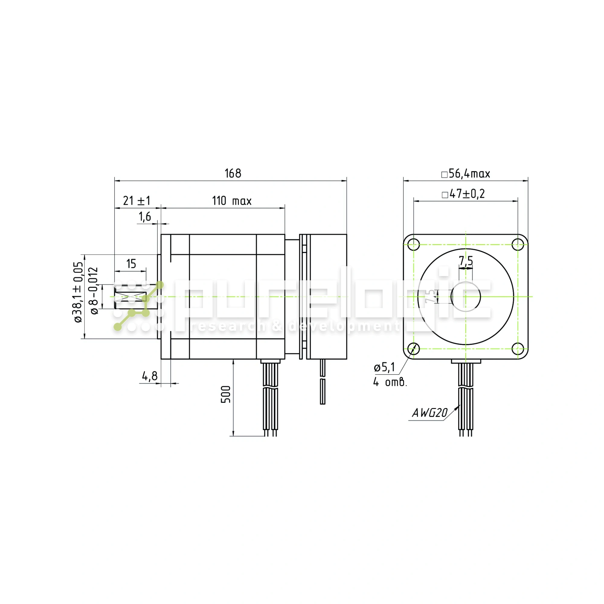 Двигатель шаговый с тормозом PL57H110-D8B