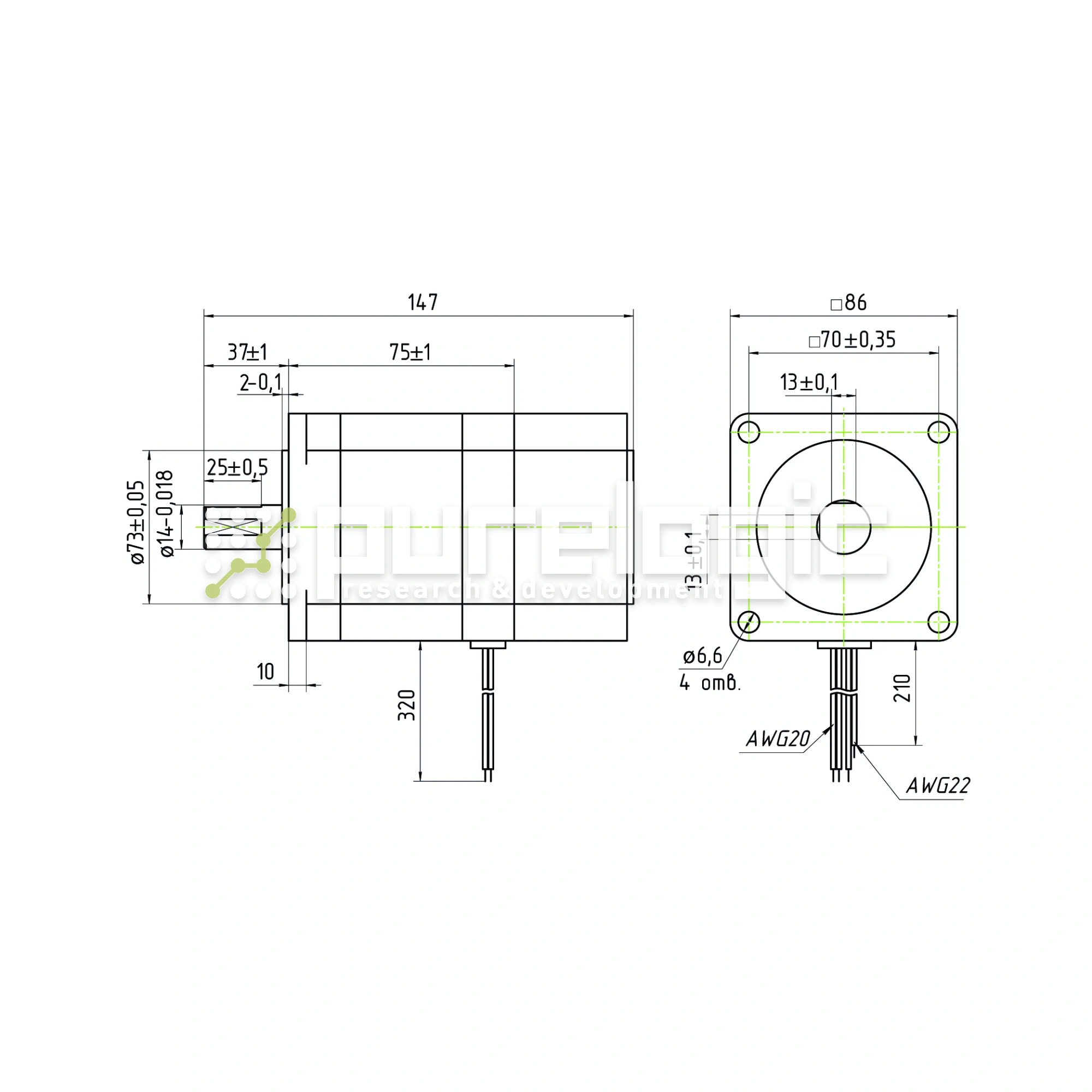 Двигатель шаговый с тормозом PL86H75-D14BC