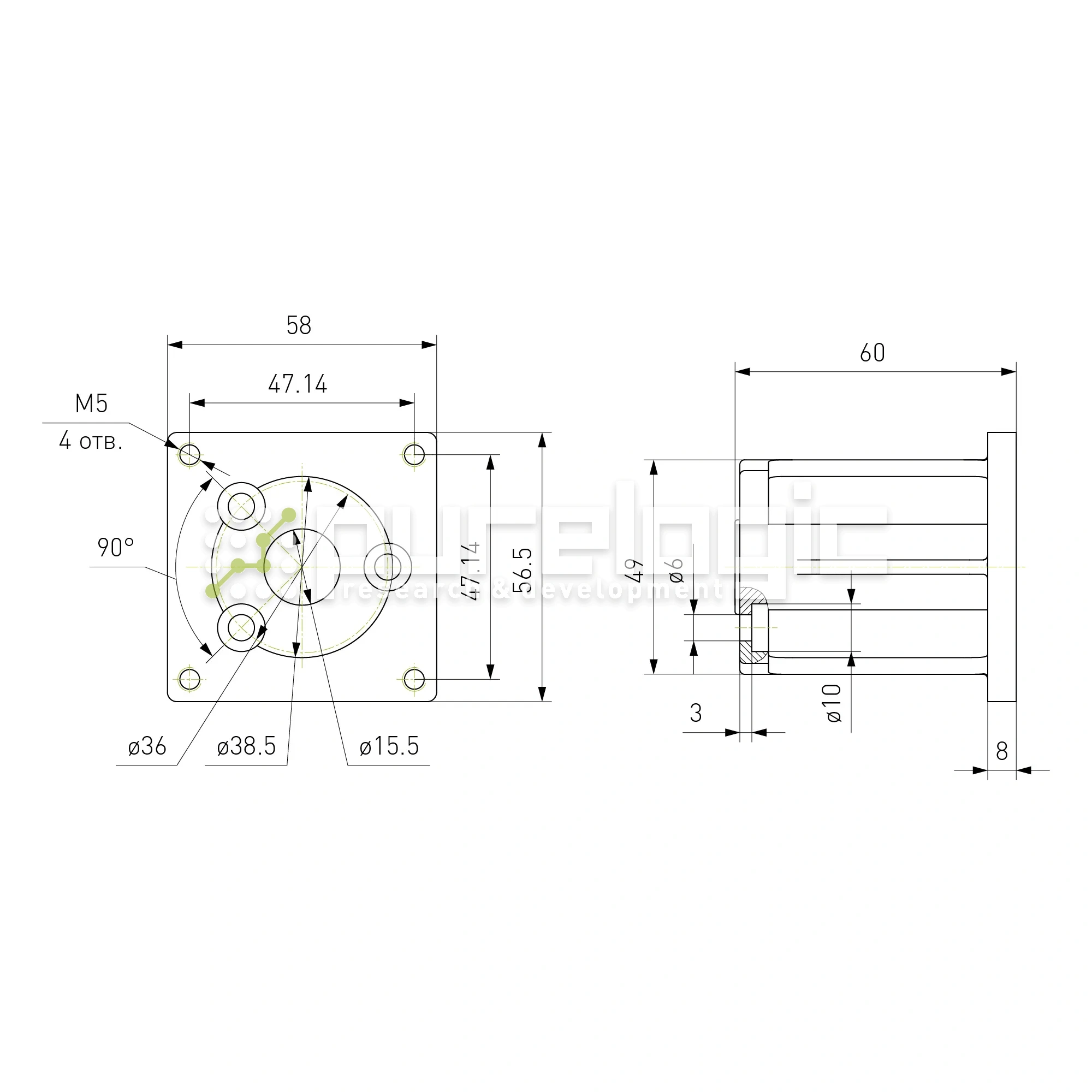 Крепление двигателя предназначено для сопряжения модуля линейного перемещения CCM-W45 и электродвигателей с фланцем 57мм (NEMA 23).