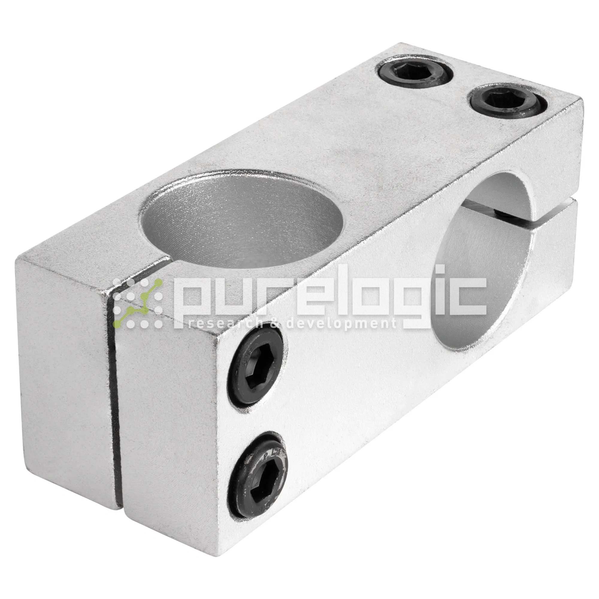 Крестообразный соединитель цилиндрических валов используется в узлах линейных перемещений для двухуровневого крестового (угол 90°) зажима двух валов. Надежность фиксации направляющих в посадочных отверстиях обеспечивают монтажные винты. Конструкции, построенные на основе таких соединителей, позволяют с легкостью вносить изменения в систему, а также проводить их многократную сборку и разборку без сверления или сварки. Диаметр посадочных отверстий 25мм, для валов SFC25, фиксация валов 4 винтами M6.