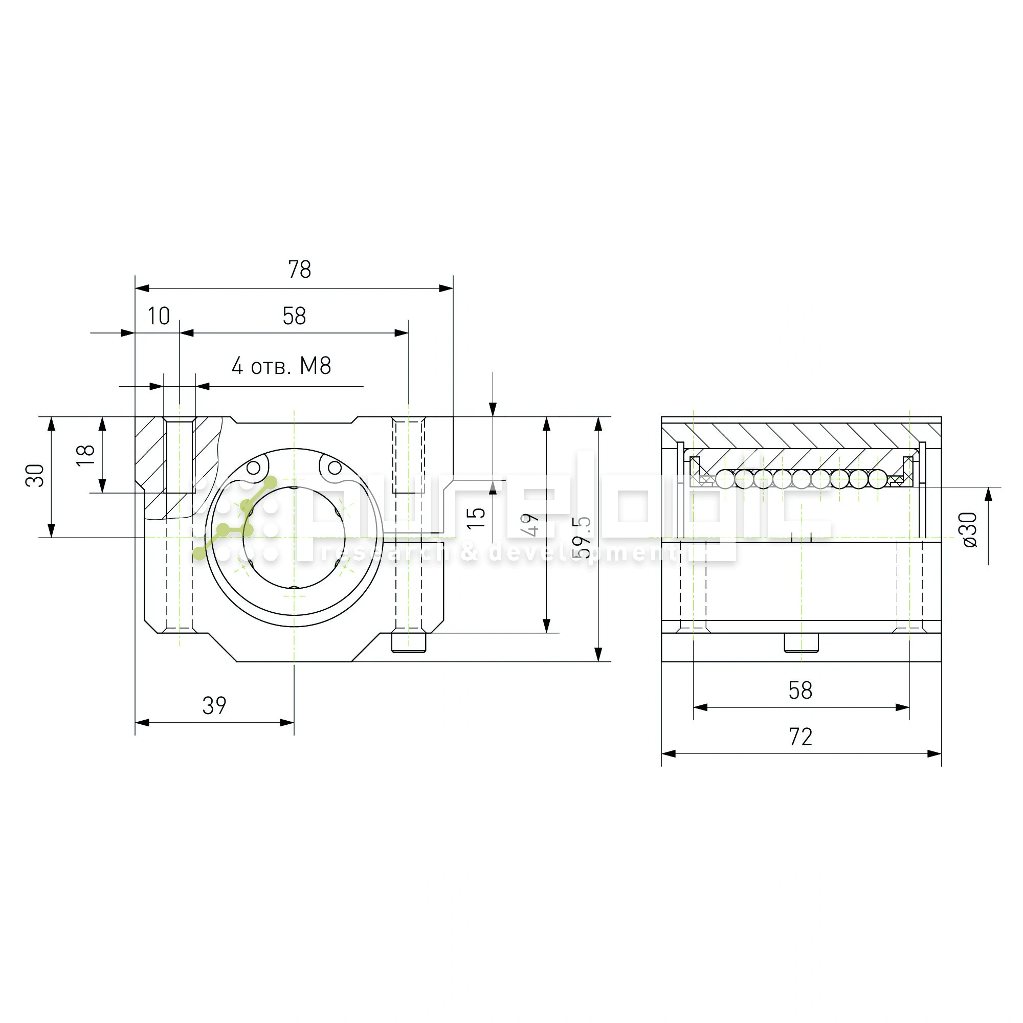 Опорный модуль на вал Ø30мм. С возможностью компенсации люфта.