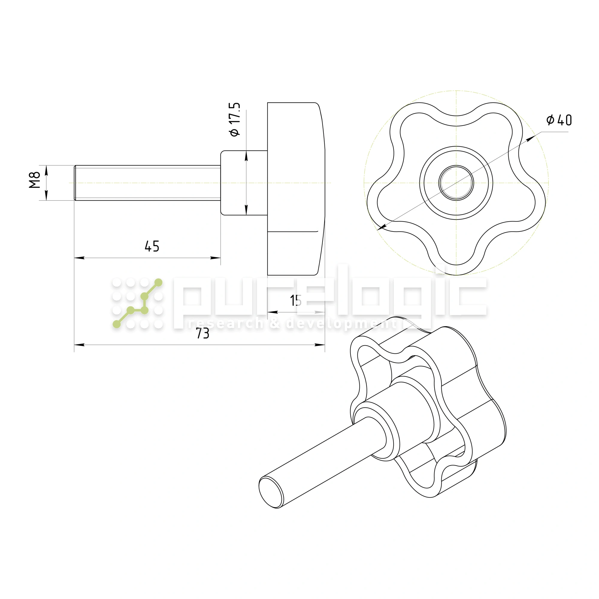 Ручка пятилепестковая 100208-40*M8*45