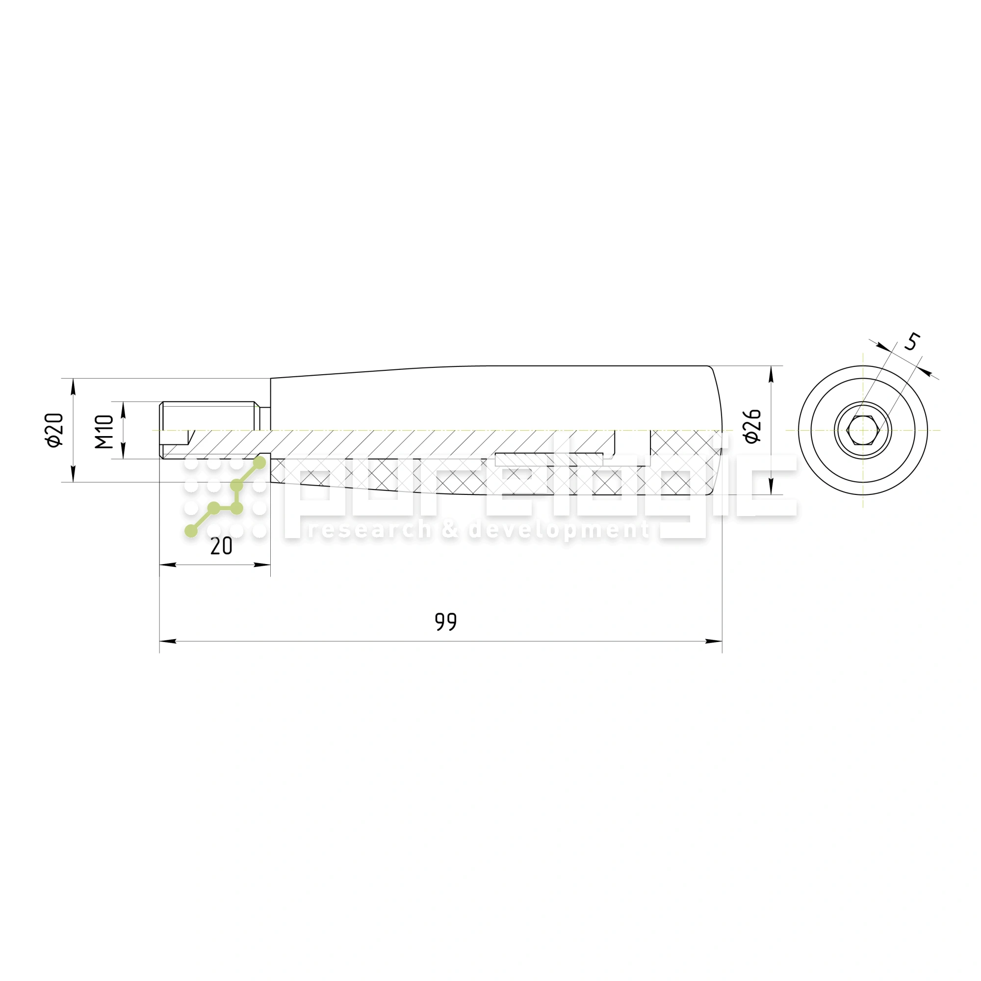 Вращающаяся рукоятка маховиков для применения в машиностроении, судостроении, измерительном оборудовании и в военной промышленности. L=80мм, D=26мм, шпилька М10