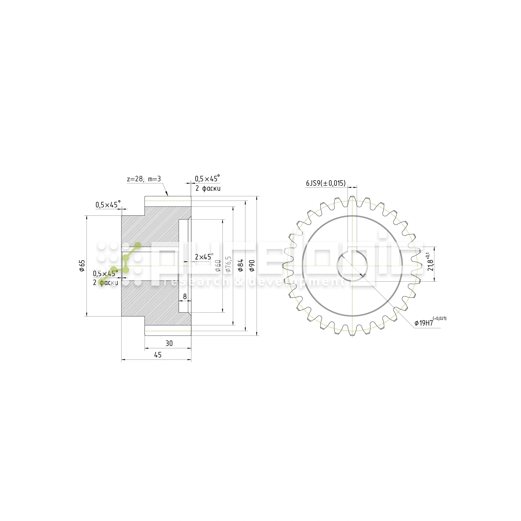 Шестерня прямозубая GS3-T28D19