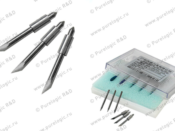 Лезвия ножей изготовлены из микрогранулированного карбида - прочного и износостойкого материала. Углы заточки ножей: 30° - раскрой полиэстровых пленок, металлизированных пленок и фольги; 45° - раскрой стандартных ПВХ-пленок; 60° - раскрой толстых и мягких материалов (пескоструйных шаблонов, текстильных пленок и пр.).